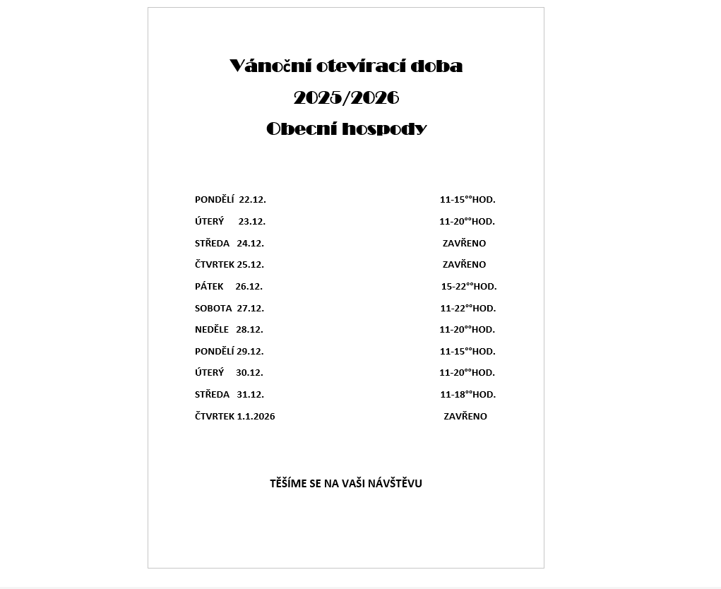 Srdečně Vás Zve kolektiv obecní hospody